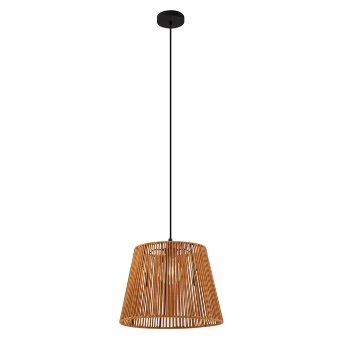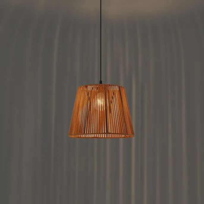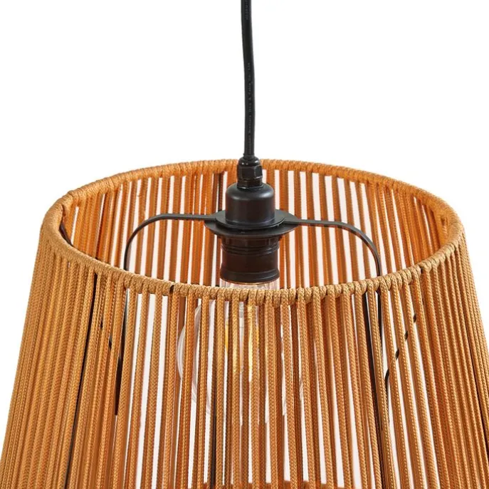 Buiten hanglamp zwart met oranje kap van touw IP44 – Cava Jayla