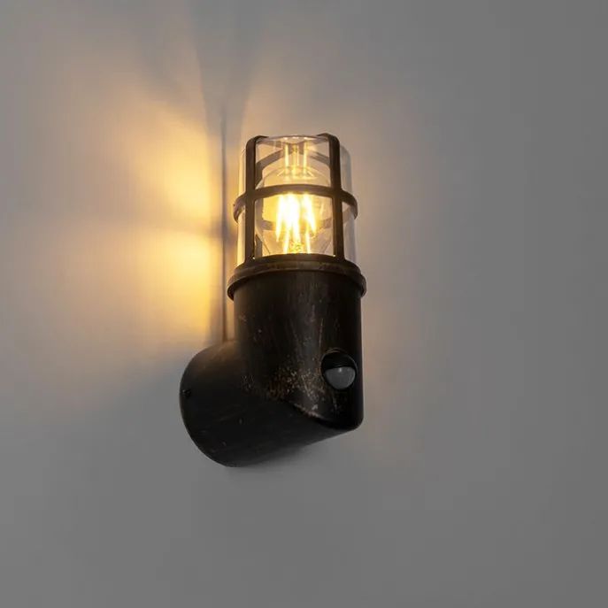 Buiten wandlamp antiek goud IP54 met bewegingssensor – Kiki