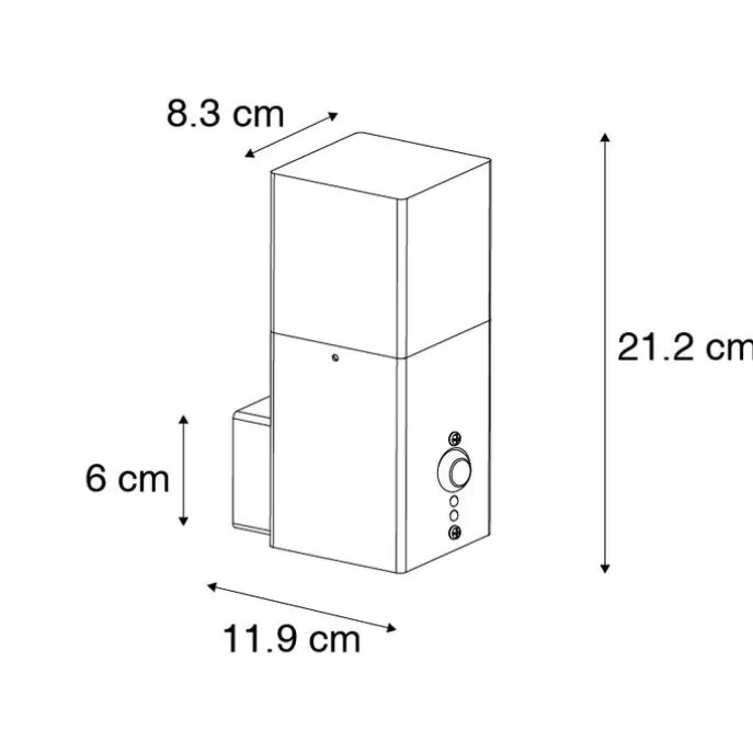 Wil ook buiten graag meer sfeer toevoegen? Dat doe je met wandlamp Denmark. Deze zwarte wandlamp is gemaakt van aluminium met kunststof. Wat hem zo bijzonder maakt is dat het kunststof een smoke effect heeft. Dit zorgt voor een gezellige sfeer. De wandlamp heeft een breedte van 8,3 cm, hoogte van 21,2 cm en lengte van 8,3 cm. De montageplaat heeft een diepte van 2,5 cm, lengte van 6 cm en breedte van 6 cm. Je maakt Denmark compleet met een lichtbron met E27 fitting (max. 15 Watt). Vergeet deze er niet nog los bij te bestellen. De lamp is dimbaar met een externe dimmer (niet inbegrepen). Met zijn IP-waarde van IP44 is de wandlamp spatwaterdicht. Daardoor is hij perfect voor beschutte plekken zoals naast de voordeur of onder de carport. Met de bewegingsmelder sprint de verlichting meteen aan wanneer er beweging wordt gedetecteerd. Zo vergeet je nooit de lamp aan of uit te zetten, super handig! Maak jouw buitenomgeving veilig en sfeervol met wandlamp Denmark.