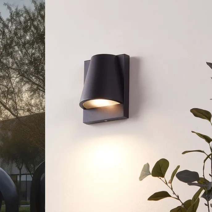 Buiten wandlamp zwart IP44 met schemerschakelaar – Femke
