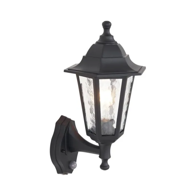 Buiten wandlamp zwart met bewegingssensor IP44 – New Haven Hammered
