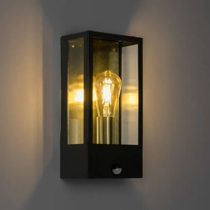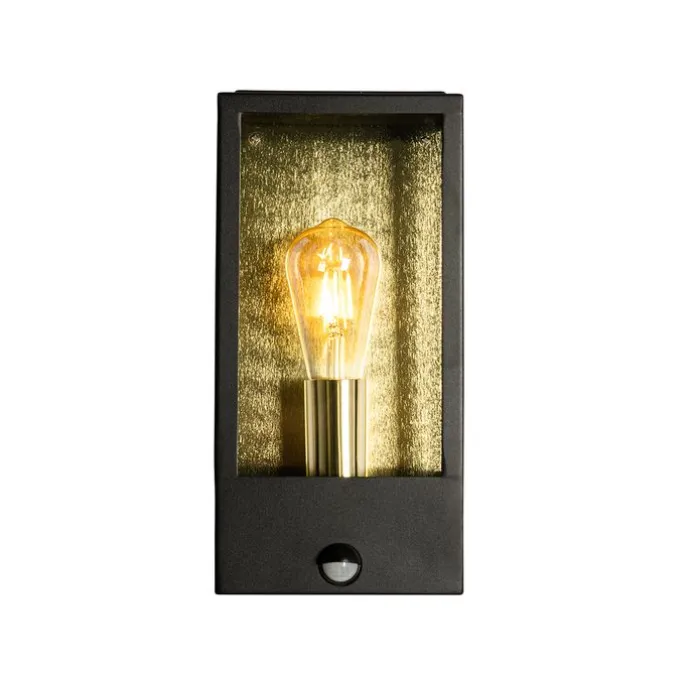 Buiten wandlamp zwart met goud en bewegingsmelder – Rotterdam