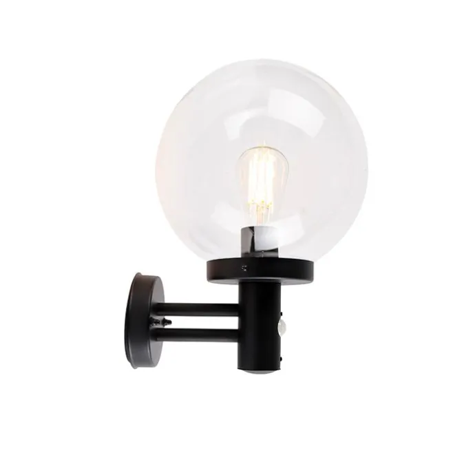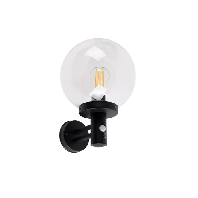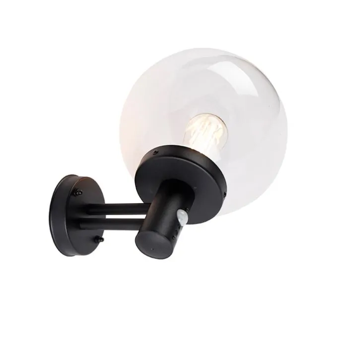 Buiten wandlamp zwart met helder glas incl. bewegingsmelder – Sfera