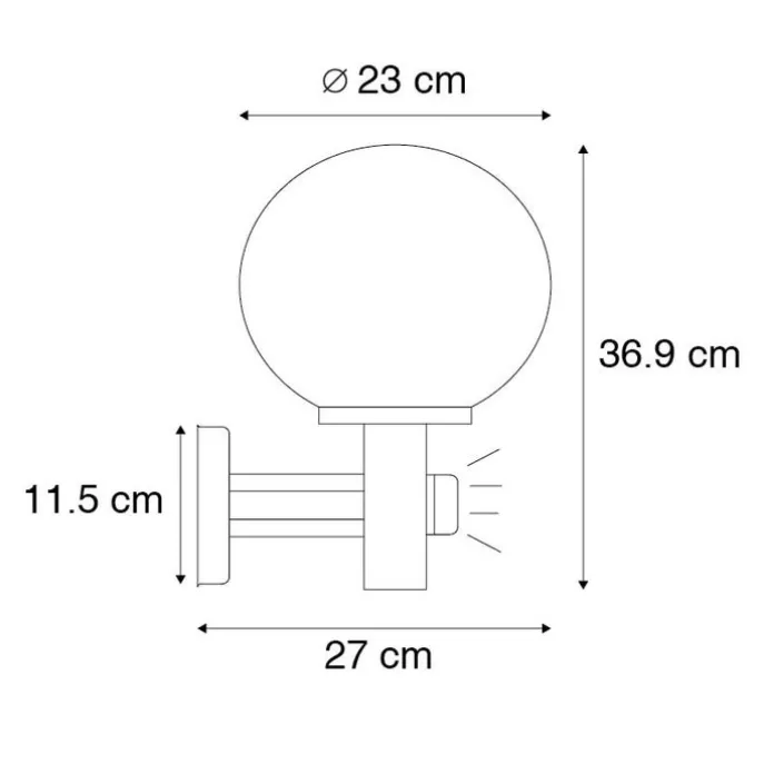 Stevige en eenvoudige moderne buitenwandlamp afgewerkt in roestvrij staal en helder kunststof. De Sfera is sterk en duurzaam waardoor het een ideale wandlamp is voor elk gebied in je tuin of buitenruimte om sfeer te creëren. Deze wandlamp is compact van formaat, heeft een totale hoogte van 36,9 cm en een diepte van 27 cm. Een leuk voordeel aan deze wandlamp: je hoeft niet meer in het donker naar je huissleutels te zoeken. Sfera beschikt over een bewegingsmelder en zal reageren op waargenomen bewegingen door de verlichting in te schakelen, super handig! De lamp heeft een IP-waarde van IP44 waardoor hij perfect geschikt is om buiten te gebruiken! Je maakt de lamp af met een lichtbron met een E27 fitting (max. 40 Watt), deze moet wel nog los bij besteld worden. Verlicht je buitenwand met de Sfera!