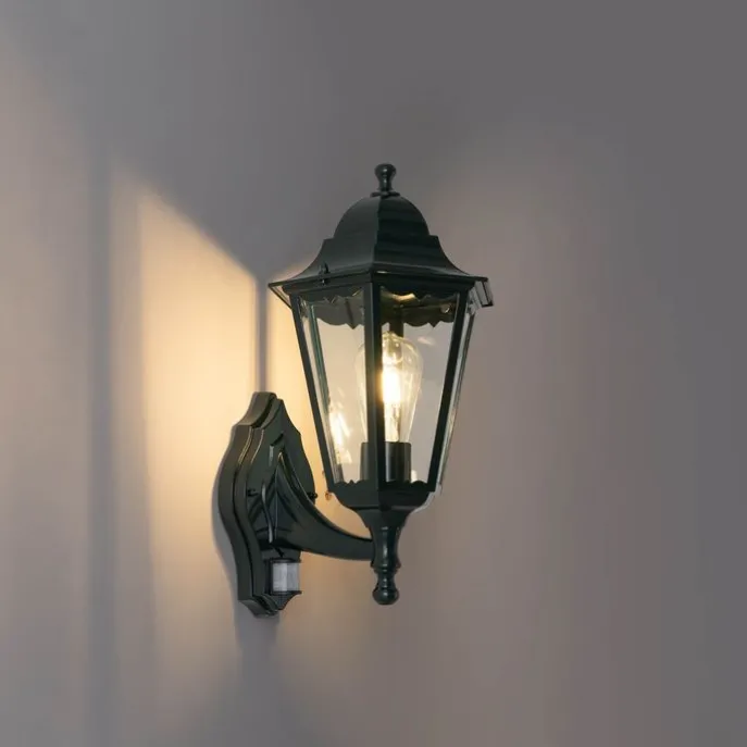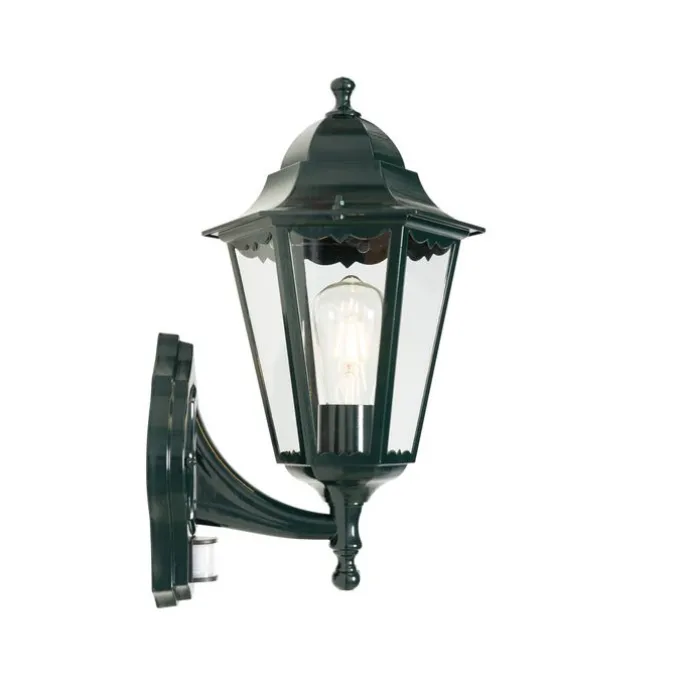 Buiten wandlantaarn donker groen met bewegingssensor IP44 – New Orleans up