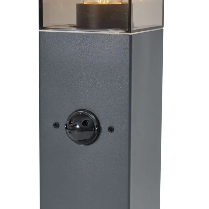 Buitenlamp donkergrijs met smoke glas 45cm IP44 met stopcontact en bewegingssensor – Malios