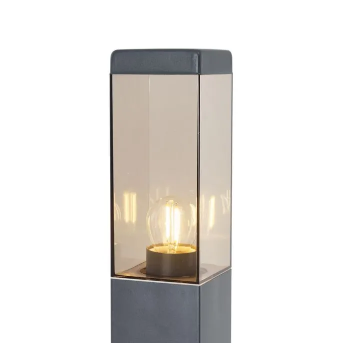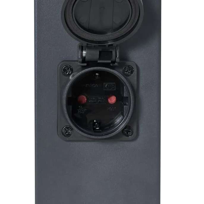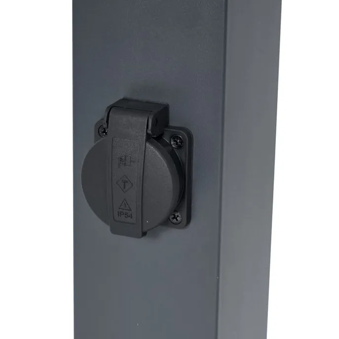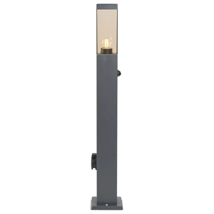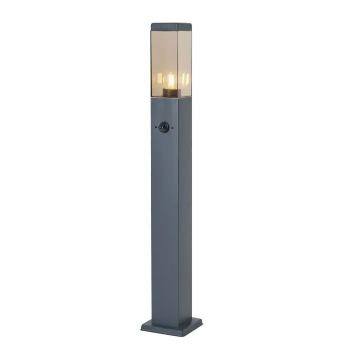 Buitenlamp donkergrijs met smoke glas 80cm IP44 met stopcontact en bewegingssensor – Malios