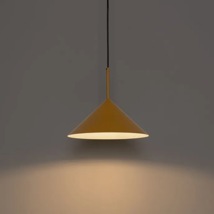 Wauw, wat een toffe hanglamp is Triangolo! Deze lamp komt volledig tot zijn recht in een design interieur. Gemaakt van staal en afgewerkt in een prachtige gele tint, voegt Triangolo een vleugje eigentijdse stijl toe aan jouw ruimte. De lamp heeft een diameter van 35 cm en een hoogte van 150 cm. Om de lamp compleet te maken, dien je een lichtbron met E27 fitting (max. 40W) apart bij te bestellen. Deze hanglamp is dimbaar, maar een dimmer is niet inbegrepen. Twijfel niet langer en kies voor de unieke uitstraling van Triangolo! Hang deze lamp bijvoorbeeld boven de eettafel in de woonkamer voor een trendy en stijlvol accent.