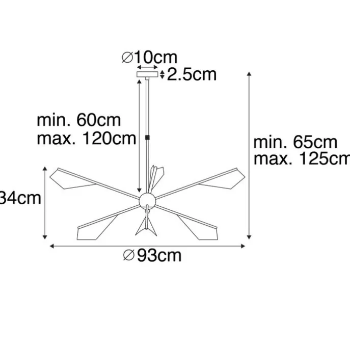 Een ware blikvanger, ook met het licht uit! Deze Sinem hanglamp is afgewerkt in een gouden armatuur met zwart: een stijlvolle combinatie. Het is een mooie lamp in de woonkamer, boven de eettafel of in de hal. De tafellamp heeft een totale hoogte van 125 cm en een diameter van 93 cm. Het montageplaatje heeft een diameter van 10 cm. Let op: deze Sinem wordt geleverd zonder lichtbronnen: bestel zelf nog 6 G9 LED lichtbronnen bij van max. 28 Watt. Ben je op zoek naar een echte eyecatcher met een design touch? Kies dan voor deze Sinem!
