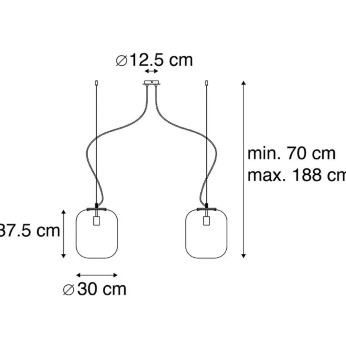 Design hanglamp zwart met goud glas 2-lichts – Bliss