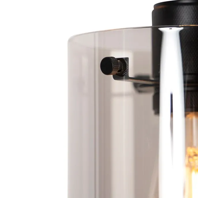 Design hanglamp zwart met smoke glas 3-lichts – Dome