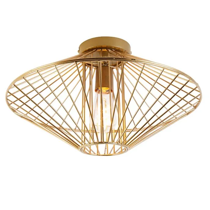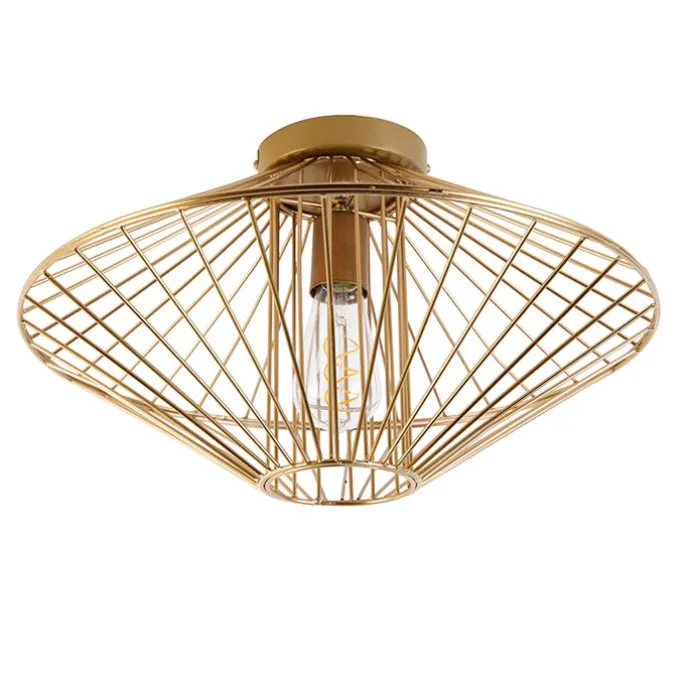 Wat een leuke eyecatcher, onze Zahra plafondlamp! Het open design van de lampenkap en de gouden afwerking geven hem een stijlvolle uitstraling. De open kap zorgt tevens voor een speels lichteffect aan het plafond. De lamp heeft een totale diameter van 45 cm en een hoogte van 24 cm. Het montageplaatje heeft een diameter van 13 cm. De Zahra plafondlamp voelt zich thuis in de woonkamer, op de slaapkamer maar ook op kantoor steelt hij de show! Let op, de plafondlamp wordt geleverd zonder lichtbron. Bestel dus nog een E27 LED lichtbron bij van max. 40 Watt. Je kan de lamp dimmen met een externe dimmer (bv. de wandschakelaar). Zorg voor elegantie in huis of op kantoor met de Zahra!