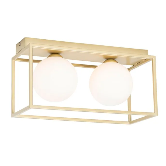 Design plafondlamp goud met wit glas 2-lichts – Aniek