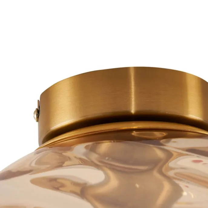 Design plafondlamp messing met amber fading glas – Pillon