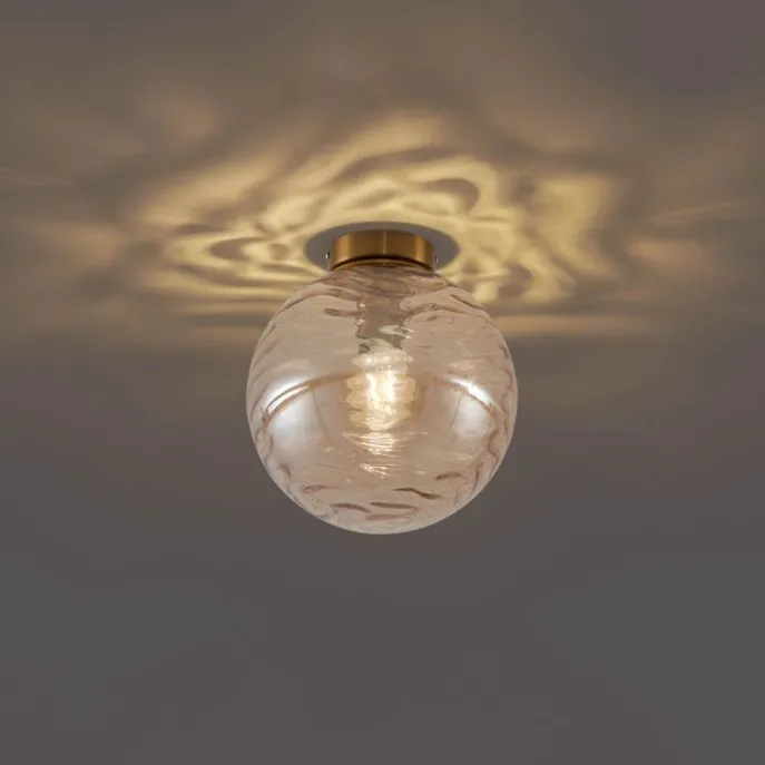 Voeg warmte en elegantie toe aan je interieur met de Pillon design plafondlamp. Deze lamp combineert een luxe messing basis met een unieke amberkleurige glazen bol die subtiel vervaagt. Het glazen oppervlak heeft een speels patroon dat een prachtig lichtspel op je plafond creëert, perfect om een stijlvolle sfeer te brengen in je woonkamer, slaapkamer of hal. De Pillon is uitgerust met een E27-fitting (lichtbron niet meegeleverd), zodat je zelf de lichtsterkte en kleurtemperatuur kunt bepalen. Het verfijnde ontwerp past moeiteloos in moderne en klassieke interieurs, terwijl het warme amberglas elke ruimte een uitnodigende uitstraling geeft. Geef jouw plafond een chique touch – bestel de Pillon plafondlamp en laat jouw interieur schitteren!