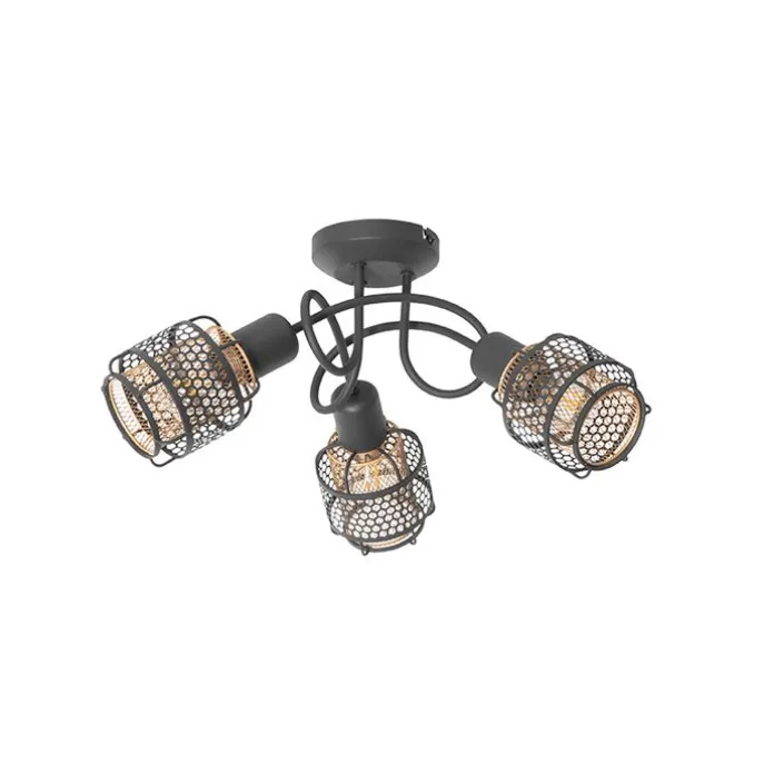 Design plafondlamp zwart met goud 3-lichts – Noud