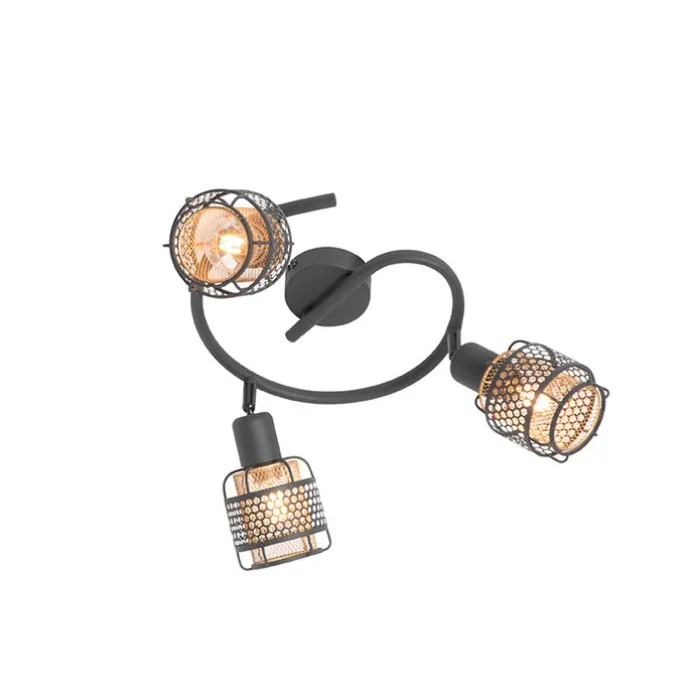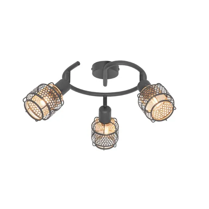 Design plafondlamp zwart met goud 3-lichts rond – Noud