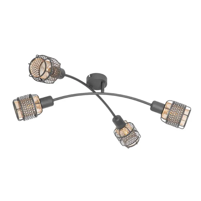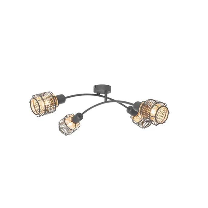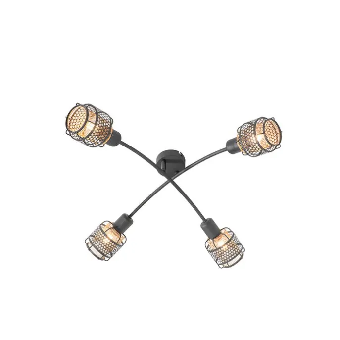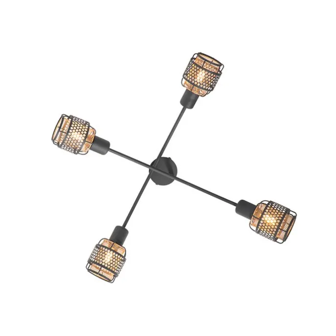 Design plafondlamp zwart met goud 4-lichts – Noud