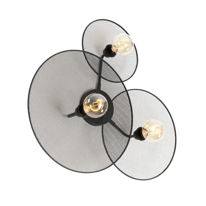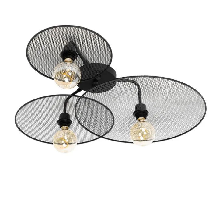 Design plafondlamp zwart met mesh 3-lichts – Jane