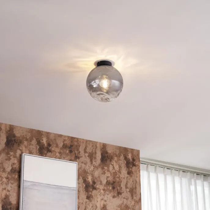 Design plafondlamp zwart met smoke fading glas – Pillon