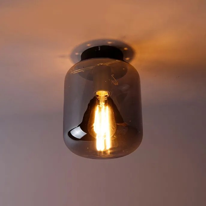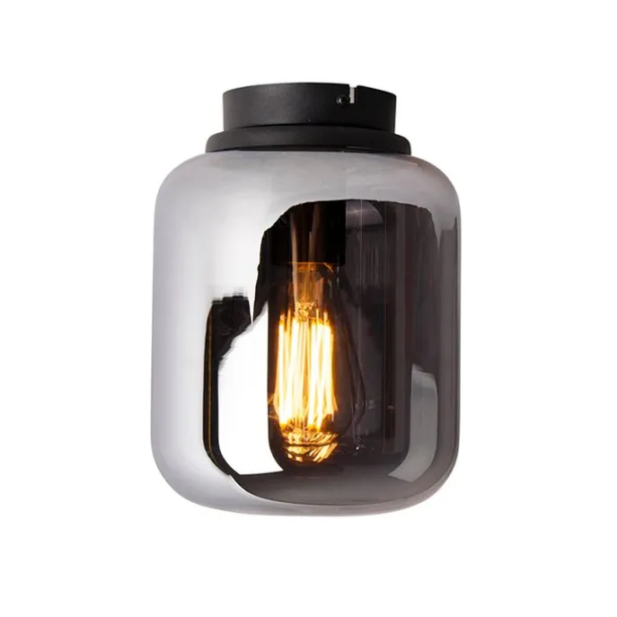 Design plafondlamp zwart met smoke glas – Bliss