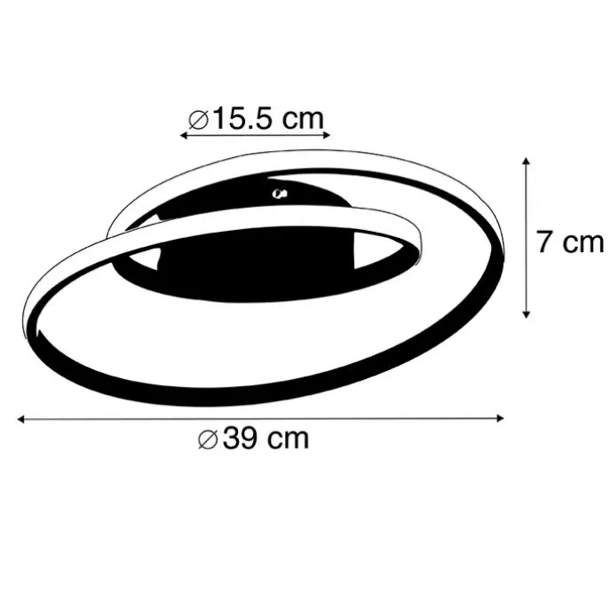 Een echt designstuk in huis, deze Krula plafonniere. De spiraalvorm zorgt ervoor dat het licht aan de buitenkant van de ronde verspreid wordt. Dit zorgt voor een unieke lichtbeleving. Deze plafonnière is gemaakt van kunststof met staal, dat geeft een strakke uitstraling. De lamp heeft een diameter van 39 cm en een hoogte van 7 cm. Krula is voorzien van niet-vervangbare LED-verlichting met 3000 Kelvin en 2200 lumen. Door de hoge lichtsterkte is deze geschikt voor in de werkkamer, op kantoor of in de hal. De lamp is voorzien van een 3-staps dimmer. Met de schakelaar aan de muur bepaal je zelf de lichtsterkte. Als je één keer duwt op de lichtschakelaar, dan krijg je 100 % licht (functioneel wit licht). Wanneer je dan nog een keer duwt krijg je 60% en bij de derde keer krijg je 30% (sfeerlicht). Plafonnières zijn perfect te gebruiken als basisverlichting, zoals deze Krula!