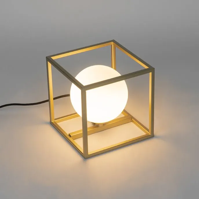 Design tafellamp goud met wit glas – Aniek