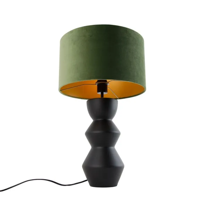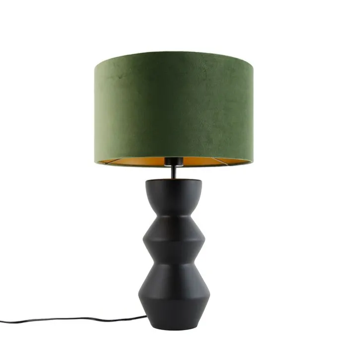 Design tafellamp zwart 16 cm velours kap groen met goud 35 cm – Alisia