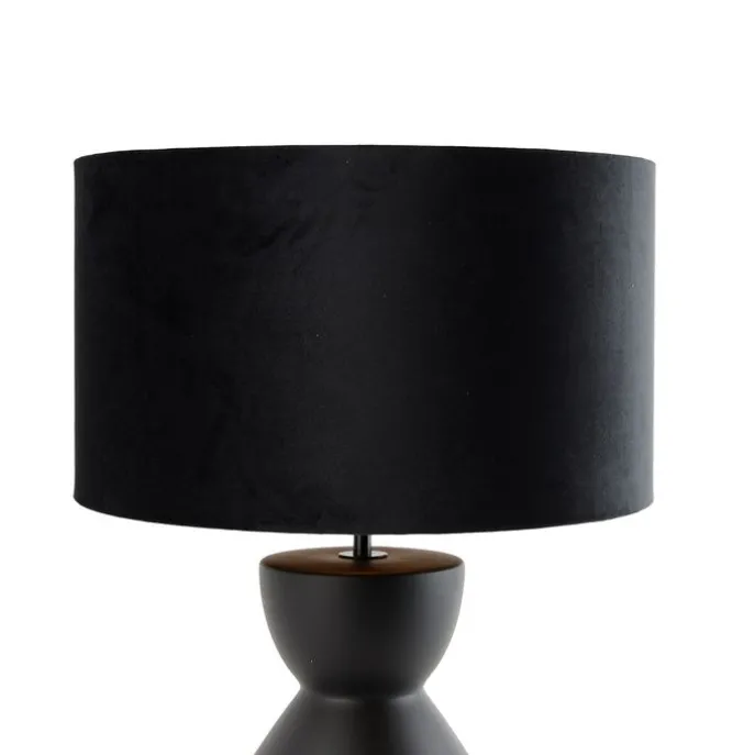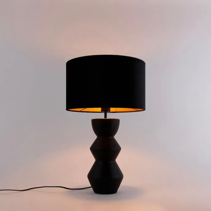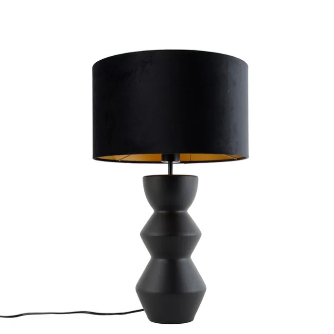 Design tafellamp zwart 16 cm velours kap zwart met goud 35 cm – Alisia