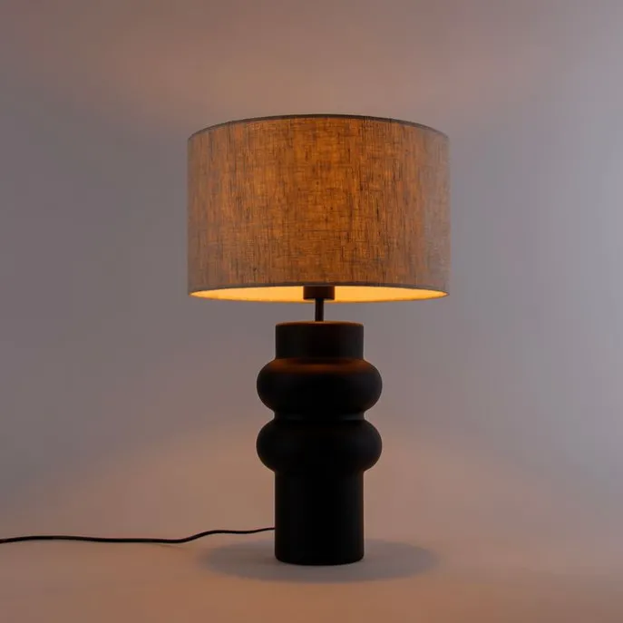 Design tafellamp zwart 17 cm stoffen kap lichtgrijs 35 cm – Alisia