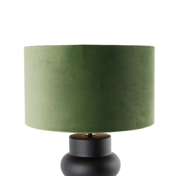 Design tafellamp zwart 17 cm velours kap groen met goud 35 cm – Alisia