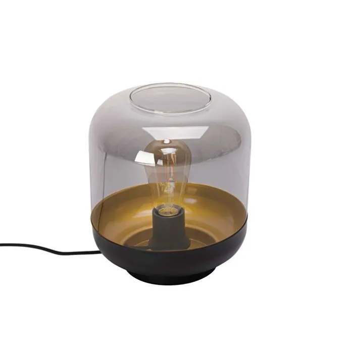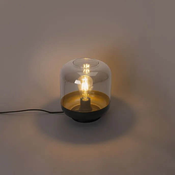 Design tafellamp zwart met goud en smoke glas – Kyan