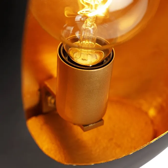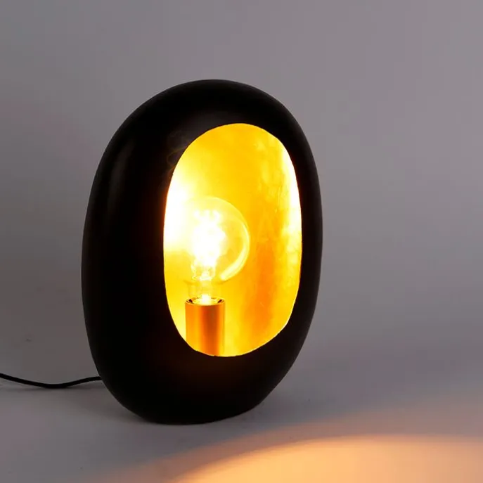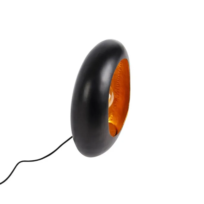 Design tafellamp zwart met gouden binnenkant 36 cm – Cova