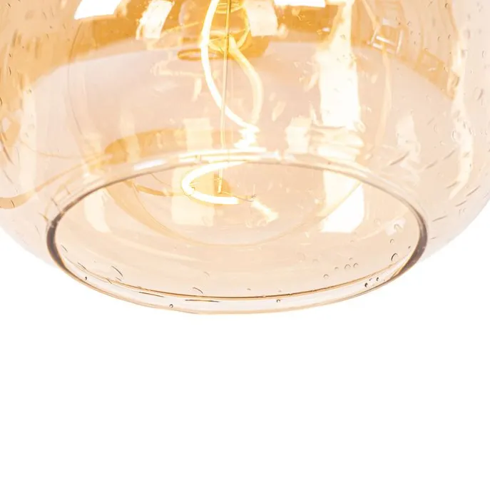 Design tafellamp zwart met messing en amber glas – Zuzanna
