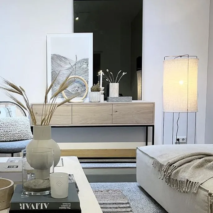 Design vloerlamp beige linnen kap – Rich