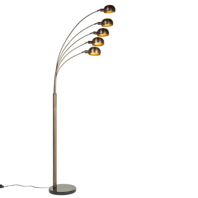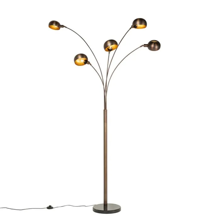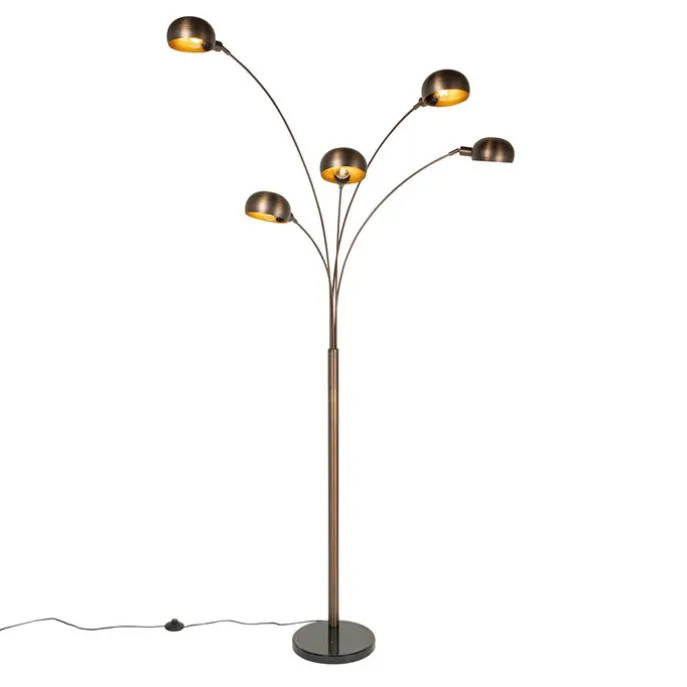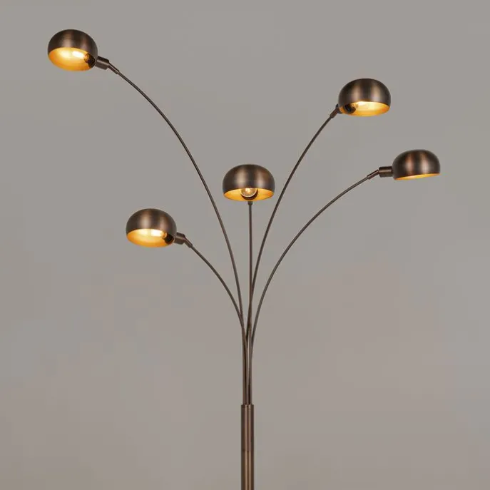 Design vloerlamp donkerbrons met goud 5-lichts – Sixties Marmo