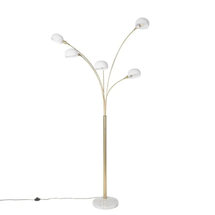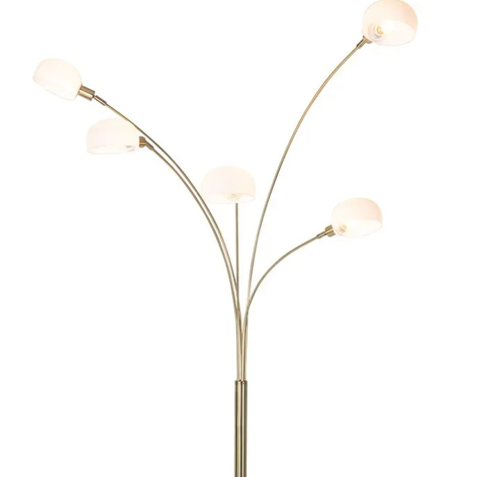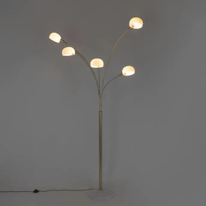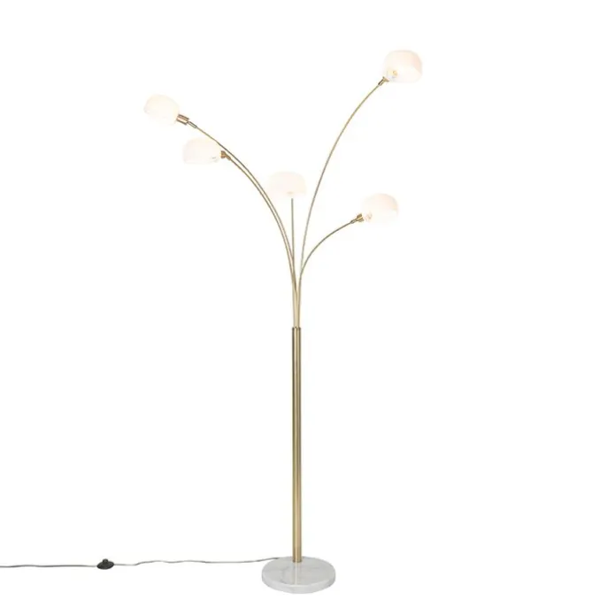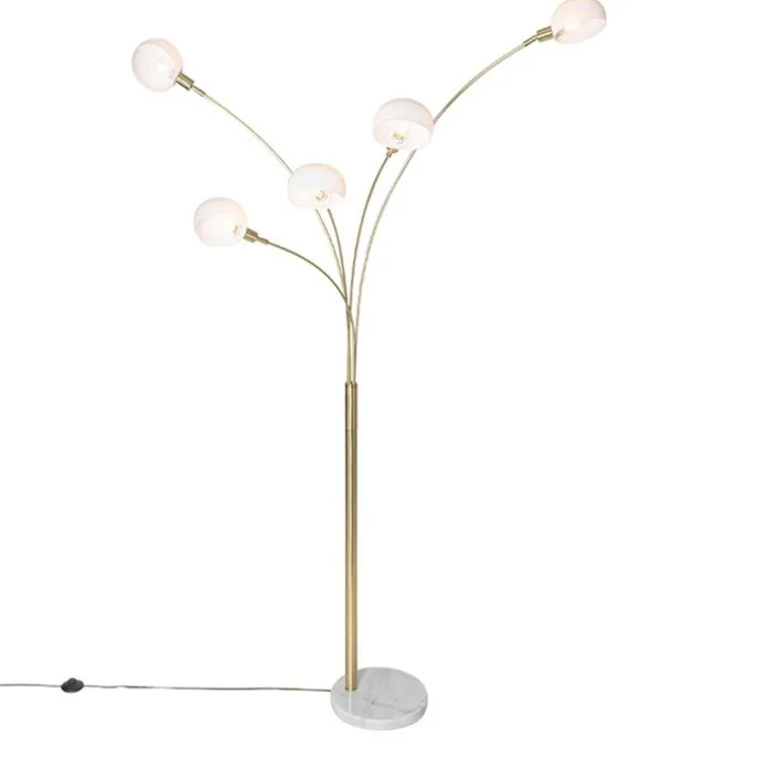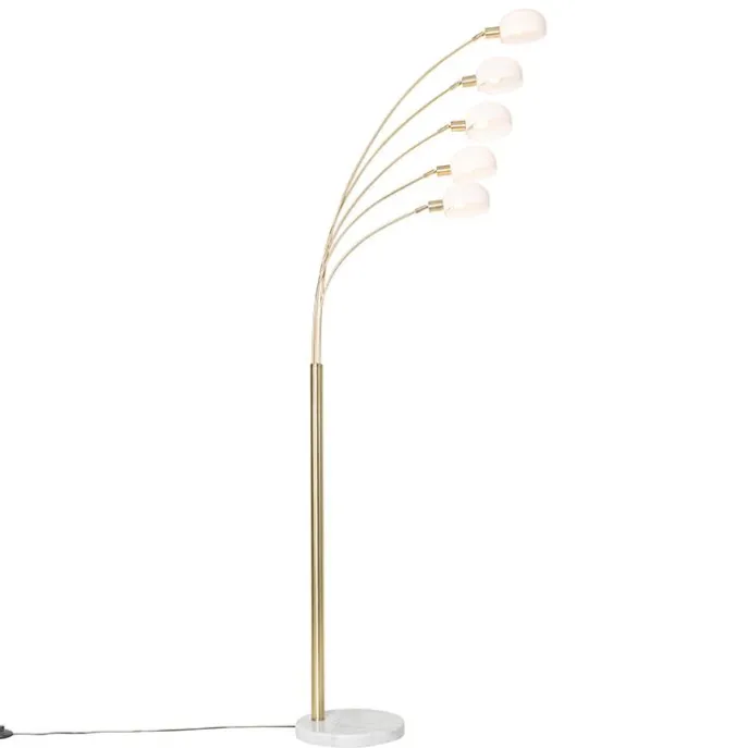 Design vloerlamp messing met opaal glas 5-lichts – Sixties Marmo