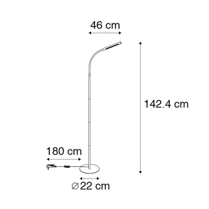 Deze tijdloze vloerlamp is een ware toevoeging aan je interieur! Met de handige verstelbare arm kun je met deze Palka vloerlamp een mooi hoekje in jouw woning verlichten. Deze vloerlamp heeft een hoogte van 142,4 cm en een diameter van 22 cm. De verstelbare arm heeft een lengte van 26 cm en een geïntegreerde (niet-vervangbare) LED met 20.000 branduren. Deze lamp heeft in totaal 409 lumen en 2700 kelvin. Je kunt deze lamp gemakkelijk dimmen met de touchdimmer op het armatuur in vier verschillende standen: 100%, 75%, 50% en 25%. Dit doe je door snel achter elkaar op de aan/uitknop te drukken. Daarmee kun je de perfecte sfeerverlichting of functionele verlichting voor in jouw woning of kantoor creëren. Deze vloerlamp wordt geleverd met snoer van 180 cm met stekker. Maak jouw woning design met deze gave vloerlamp!