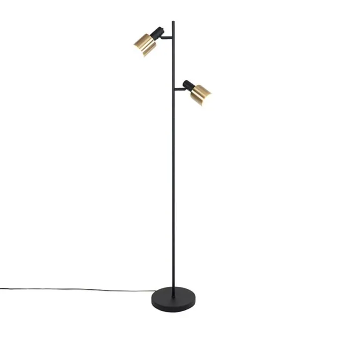 Design vloerlamp zwart met goud 2-lichts – Stijn