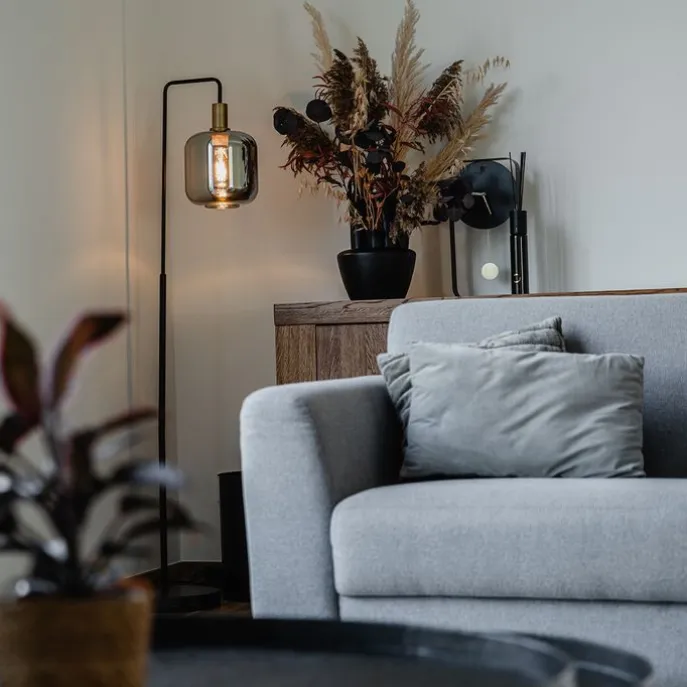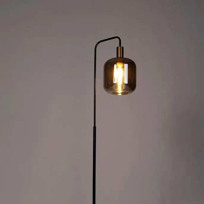 Design vloerlamp zwart met goud en smoke glas – Zuzanna