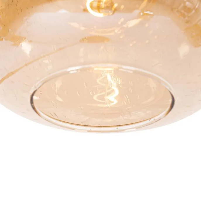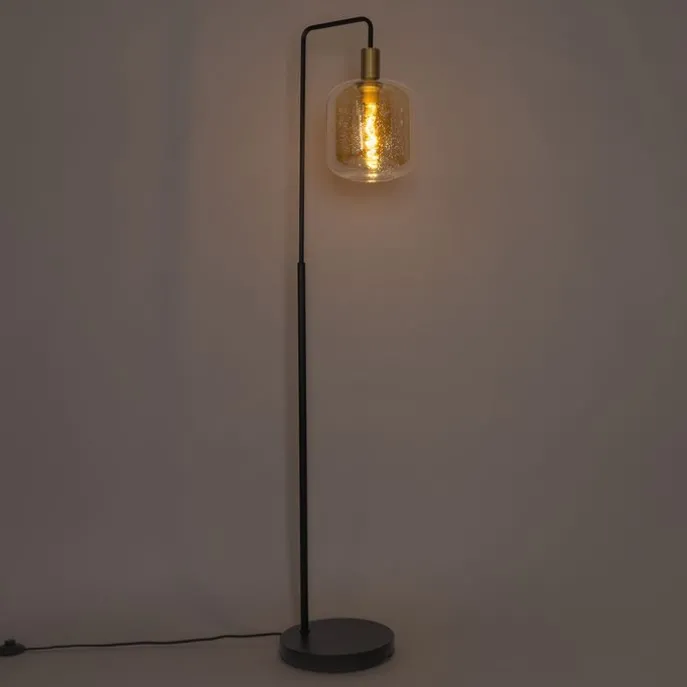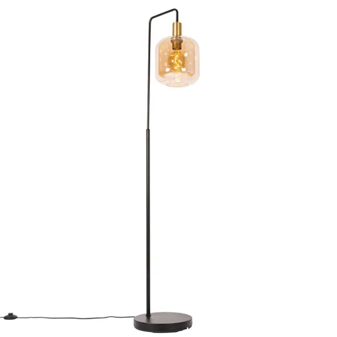 Design vloerlamp zwart met messing en amber glas – Zuzanna