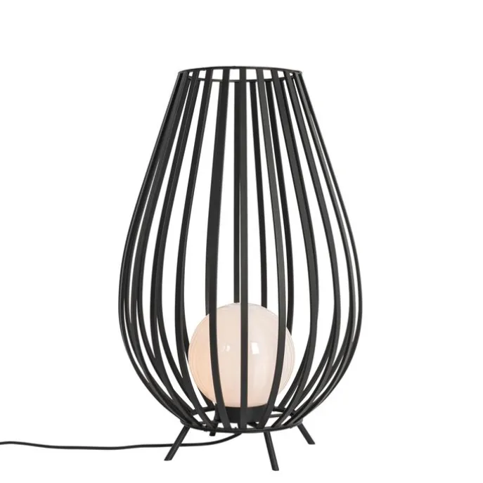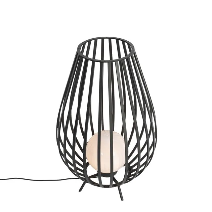 Design vloerlamp zwart met opaal 70 cm IP44 – Angela