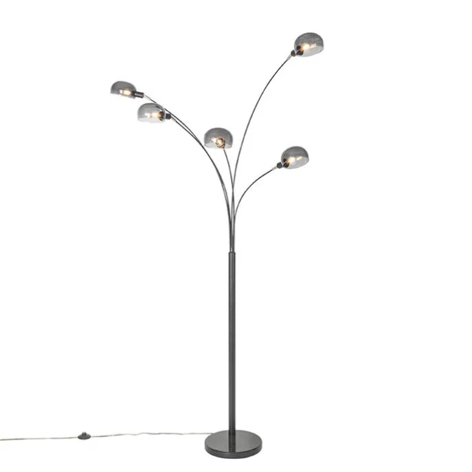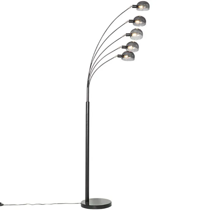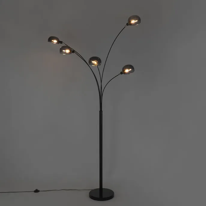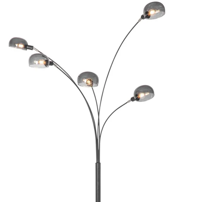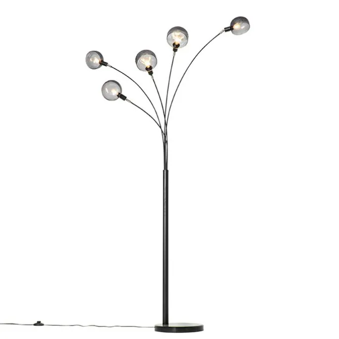 Design vloerlamp zwart met smoke glas 5-lichts – Sixties Marmo