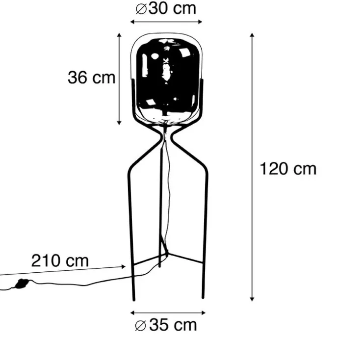 Deze mooie Bliss vloerlamp met donker smoke glass is perfect voor ieder interieur! Door het donkere glas heeft deze lamp een geweldig lichteffect. Je maakt de lamp af met een lichtbron met een E27 fitting (max. 60 Watt, deze moet wel nog los bijbesteld worden. Het glas van deze Bliss lamp heeft een lichte vorm van spiegeleffect. Dat geeft hem een stoere touch!De lamp heeft een diameter van 35 cm en een hoogte van 120 cm. De kap heeft een diameter van 30 cm en een hoogte van 36 cm. Het snoer heeft een lengte van 210 cm. De lamp is dimbaar met een externe dimmer (dimmer niet inbegrepen). Haal deze sfeermaker nu in huis en maak jouw interieur helemaal compleet!