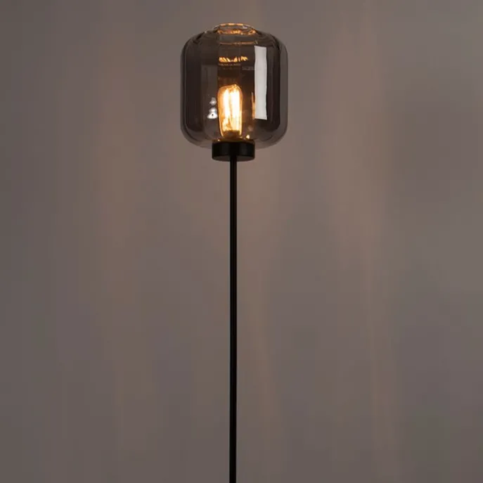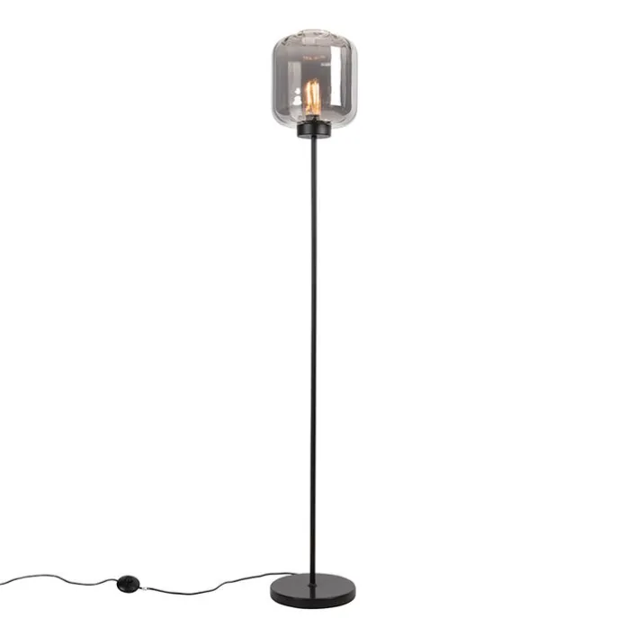 Design vloerlamp zwart met smoke glas – Qara