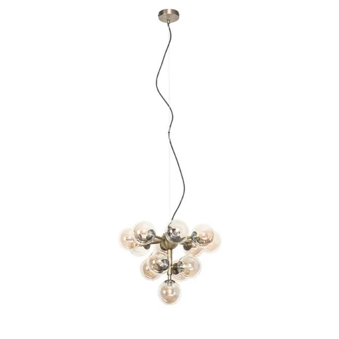 Hanglamp brons met amber glas 13-lichts – Bianca