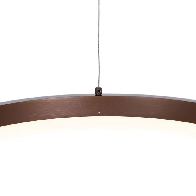 Een strakke en moderne hanglamp is deze Anello. De bovenkant van de ring is brons en de onderkant bestaat uit een ingebouwde LED ring. De LED ring heeft 30 Watt, 2.700 Kelvin en geeft 3235 lumen. Deze hanglamp heeft een heel speciaal ingebouwd dimsysteem. De lamp is drie staps dimbaar. Dat wil zeggen dat je zelf je dimstand kan kiezen. Op stand 1 schijnt de lamp voor 100%, op stand 2 voor 60% en stand 3 is enorm gezellig licht: dan schijnt de lamp nog maar voor 30%. Wanneer je op de schakelaar drukt laat de lamp zijn range van standen automatisch zien. Door nogmaals op de schakelaar te drukken kies je een lichtstand uit, hiermee gaat ook de lamp uit. Druk je hierna nog een keer op de schakelaar heeft de lamp de door jou gekozen lichtstand. Deze ring heeft een diameter van 40 cm en een hoogte van 120 cm. Een modern pareltje voor jouw woning!