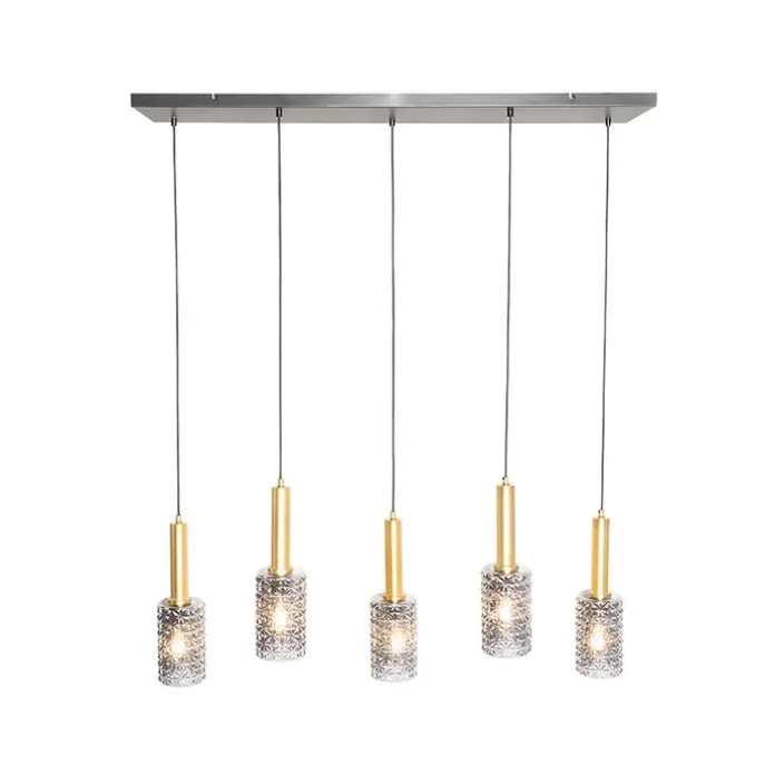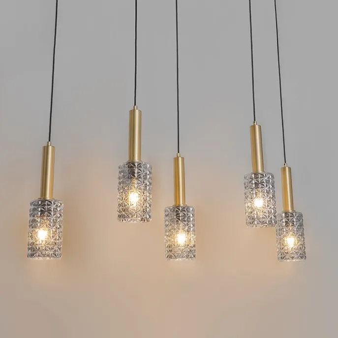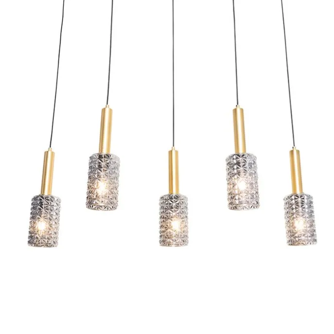 Hanglamp goud met smoke glas langwerpig 5-lichts – Elva