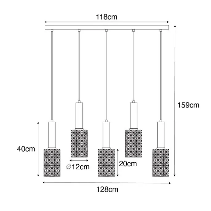 Fris jouw interieur op met hanglamp Elva. Doordat hij gemaakt is van smoke glas met staal en is afgewerkt in het zwart met goud, is het een echte must-have voor een Art Deco interieur. Doordat de lamp 5 lichtpunten heeft zorgt hij altijd voor voldoende licht in de ruimte. Elva heeft een lengte van 128 cm, breedte van 12 cm en een hoogte van 159 cm. Zorg dat je lichtbronnen met E27 fitting erbij besteld om de lamp compleet te maken. Behoefte aan wat minder licht? Elva is dimbaar, maar een dimmer is niet inbegrepen. Mist jouw interieur nog wat sfeer? Dan is Elva de perfecte keuze.