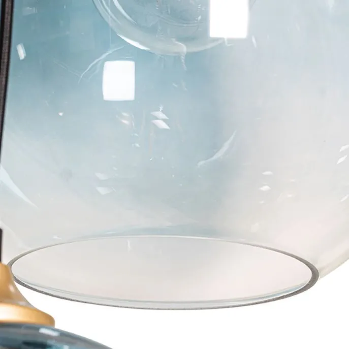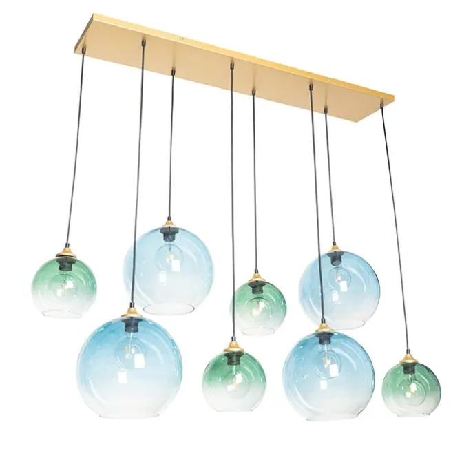 Hanglamp messing met blauw en groen glas 8-lichts – Sandra